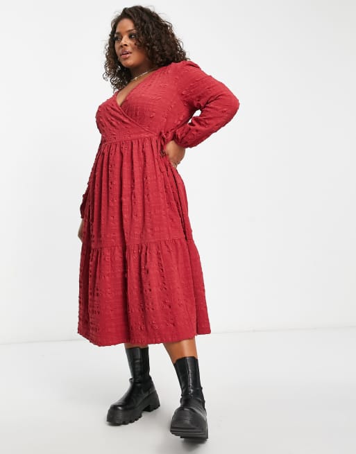 Product id: Burgundy wrap midi deals dress