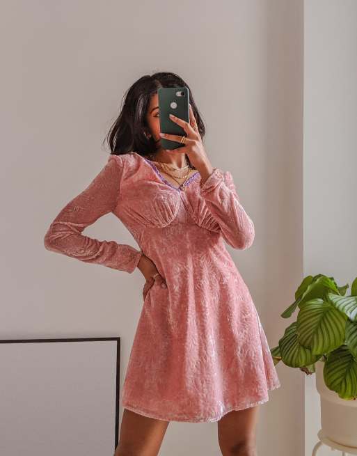 Product id: Pink velvet deals long sleeve dress