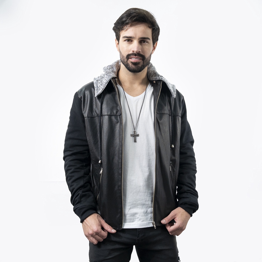 Product id: Jaqueta de couro com manga de moletom deals masculina